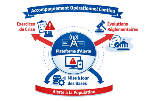 Les décideurs publics et privés attendent aujourd’hui davantage qu’une solution performante. Ils veulent s’assurer que cette solution restera exploitable lorsque les personnes changent, lorsque le contexte réglementaire se durcit et lorsque les exercices révèlent des écarts entre le plan et la réalité. C’est pour cela que l’accompagnement continu est devenu stratégique. Il ne sert pas seulement à améliorer le confort d’utilisation. Il permet de préserver la crédibilité du dispositif d’alerte, sa traçabilité et sa capacité à soutenir une décision rapide.
